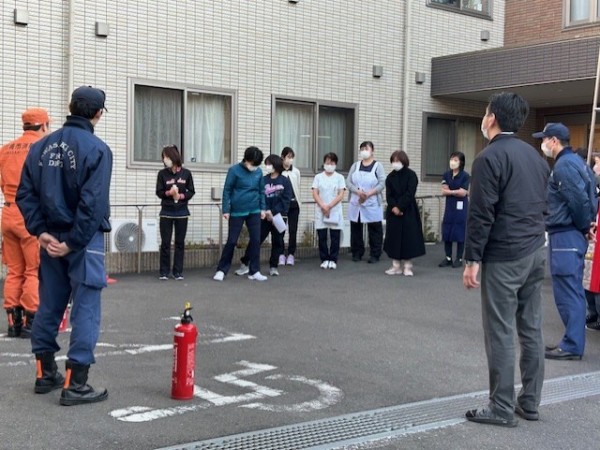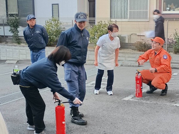 普段から消火器は目にしていますが、いざ消火を想定して操作してみると、想像以上に重さを感じ、実際に体験することの大切さを実感しました。私たち職員にとっても、非常に貴重な学びの時間となりました。