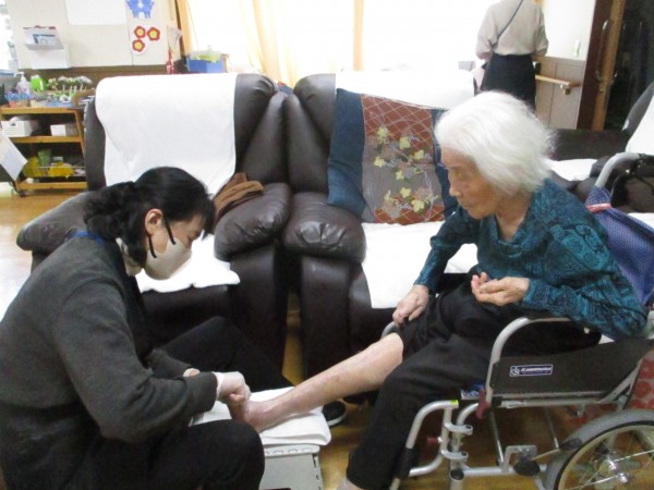 本日はシニアセラピーを行いました。当施設で行っているシニアセラピーは、アーモンドオイルを使用したやさしいリンパドレナージュです。音楽や特別な演出はありません。静かな空間の中で、ゆっくりとお顔や足のリンパを流していきます。施術が始まると、最初は少し緊張されていた表情も、次第にやわらいでいきます。「気持ちいいね」「足が軽くなったみたい」そんなお声が聞かれると、私たちも思わず笑顔になります。