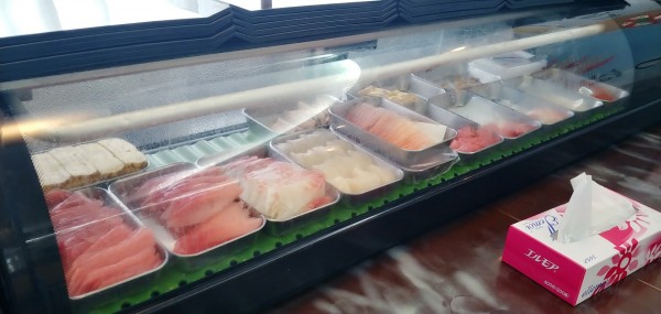 見てください!!ケースに並ぶ新鮮で旨そうなネタ…早く食べたい(笑)