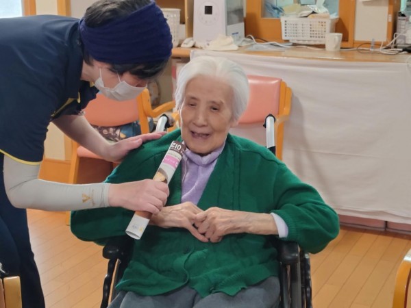 広告を丸めたマイクを持って職員がまわると、皆さん笑顔でご自身の名前を仰っていました(*^^*)