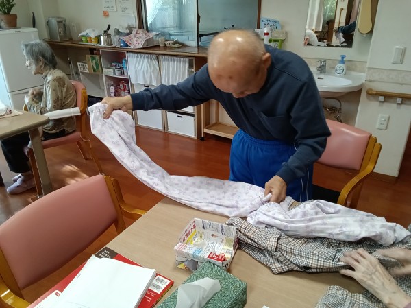 タオルや衣類を丁寧に畳む動作は、指先を使い、集中力も必要とする大切な日常動作です。