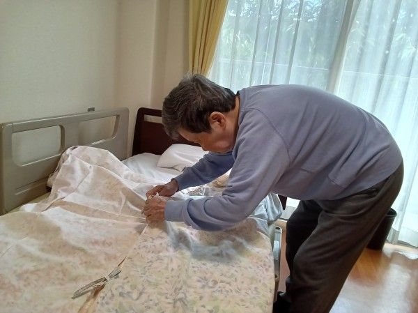 リネン交換も同じく、清潔なシーツに整えられたお部屋を見て、「気持ちがいいね」と笑顔がこぼれます(*^^*)