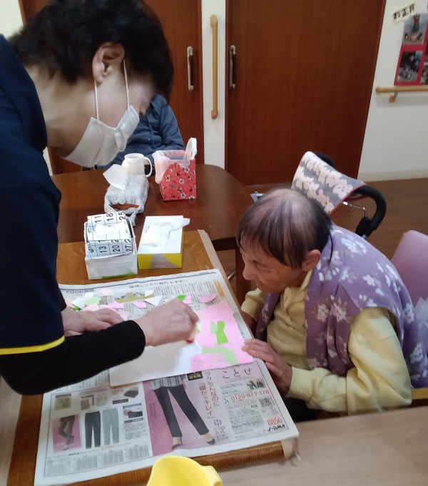 本日はレクレーションで3月に飾りつけの準備をしていました♪