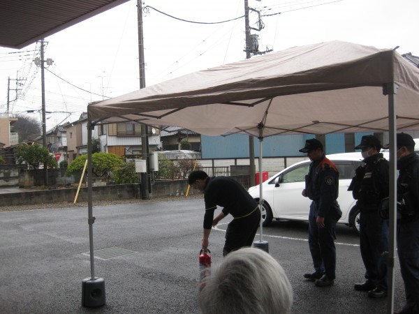 火事が多い季節とのことで久喜市消防署の協力のもと正しい消火訓練や通報訓練、避難誘導訓練を行いました。
