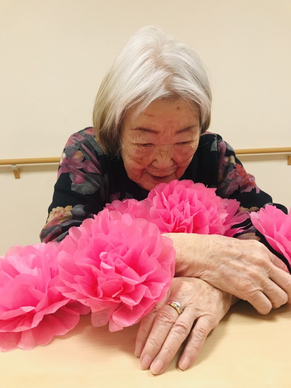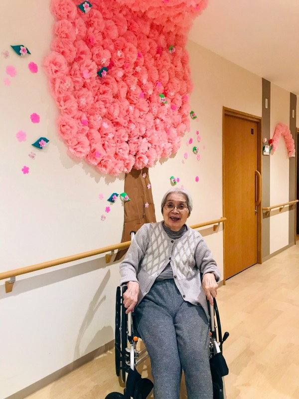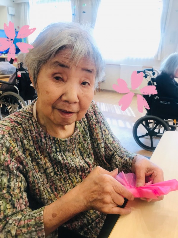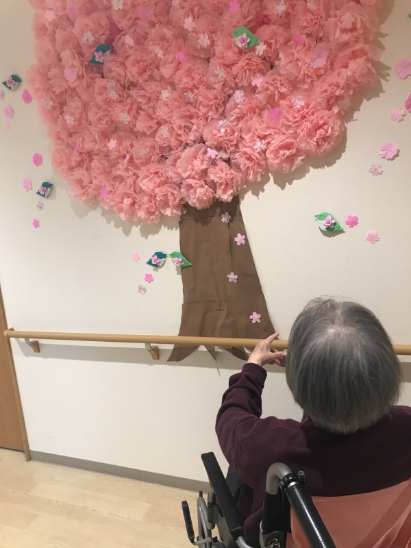 そこで1階では一足早く、桜の装飾の制作に取り組みました٩(๑❛ᴗ❛๑)۶