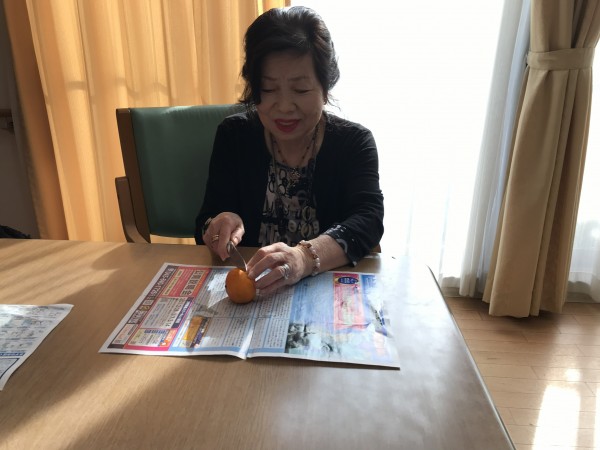 「皆さん、鳥たちが啄みにきてくれる“みかん”を切って