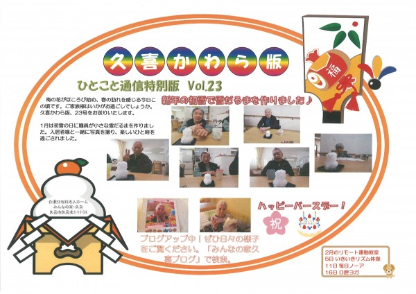 1月の様子を「久喜かわら版 Vol.23」にまとめましたので、ぜひご覧ください。