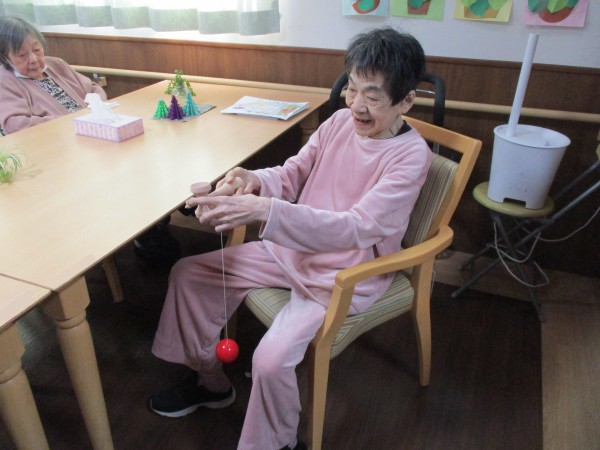 最近、けん玉や手回しコマなど、昔遊びの道具が届き、みなさん隙間時間で遊んでおられます(*^_^*)