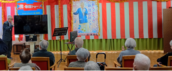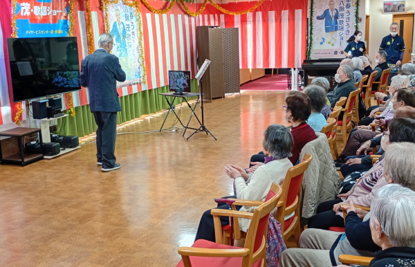 今回は、27日(金)に1階デイサービスにて行なわれた「八鍬茂さん歌謡ショー」の様子をお伝えします。