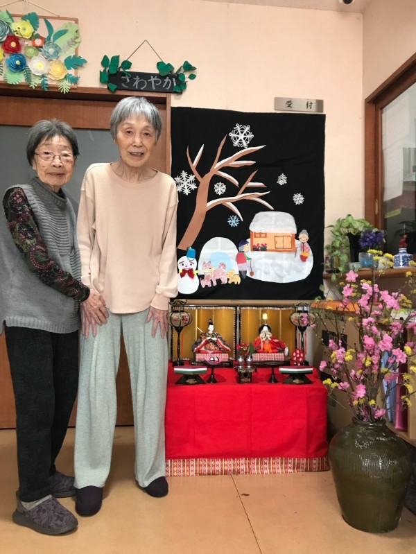 ホームの入り口にお雛様を飾ったので記念撮影を。