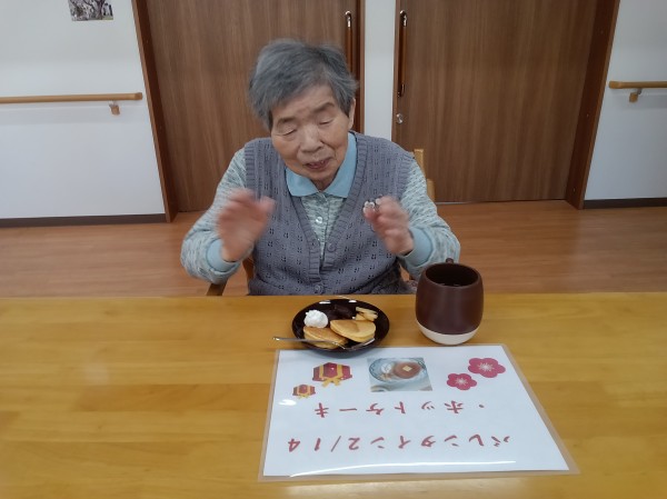 今日は1階でバレンタインにおやつ作りを行いました。 召し上がられているご様子をお知らせいたします!!