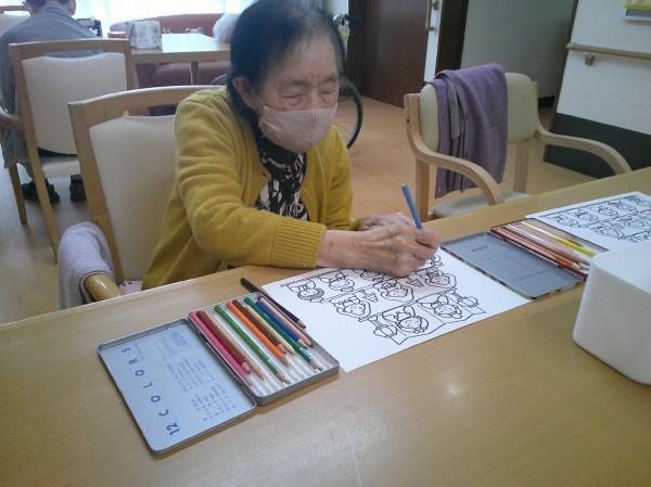 「私塗り絵は苦手なのよ(^_^;)」と仰っている方もいましたが、皆様集中して塗り絵をされていました♪♪