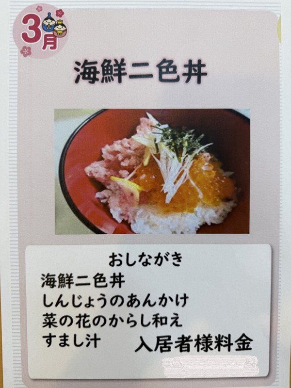 今月のイベント食は久々の海鮮二色丼です!