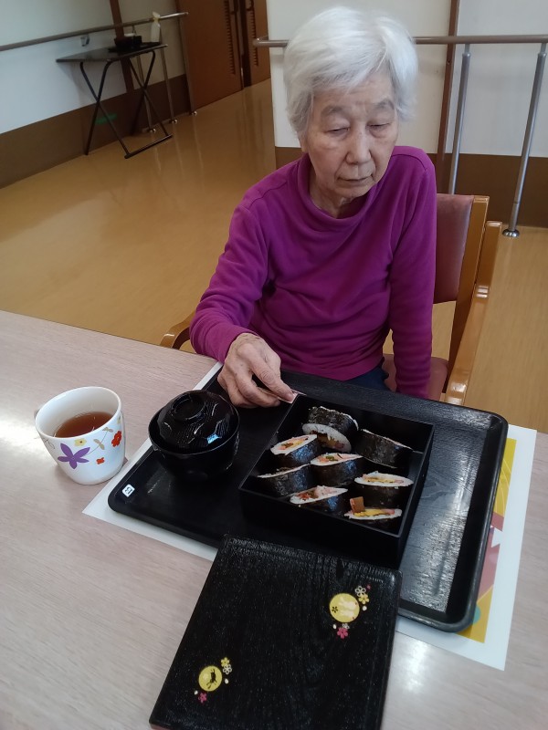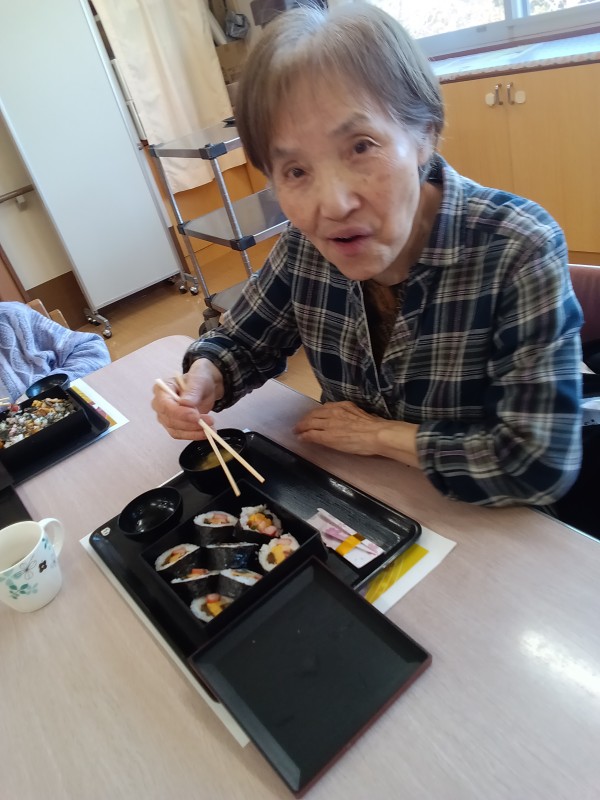 節分の日は皆様で恵方巻の昼食を笑顔で召し上がっている様子をお伝えします(≧▽≦)