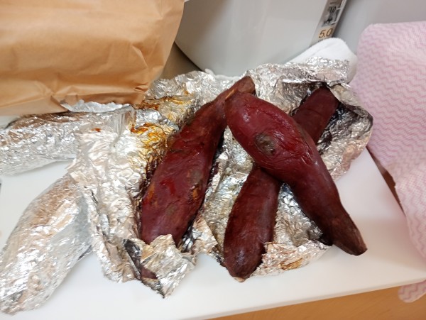 実際に召し上がっていただくと、「甘くておいしいね」「ほくほくしているね」と大好評で、皆さま嬉しそうに味わっておられました。職員も一緒に楽しい時間を共有することができ、笑顔あふれるひとときとなりました。