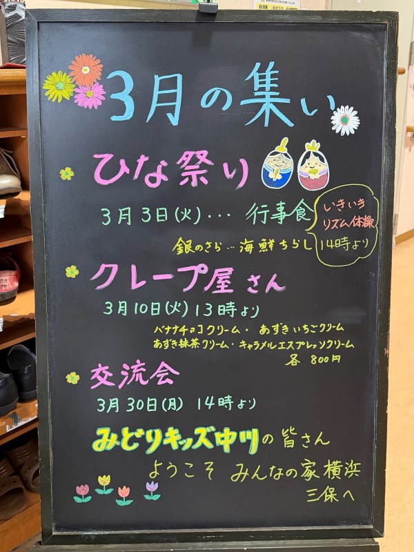 みんなの家・横浜三保 3月のイベントスケジュール ~ グループホームみんなの家・横浜三保の介護ブログ ~