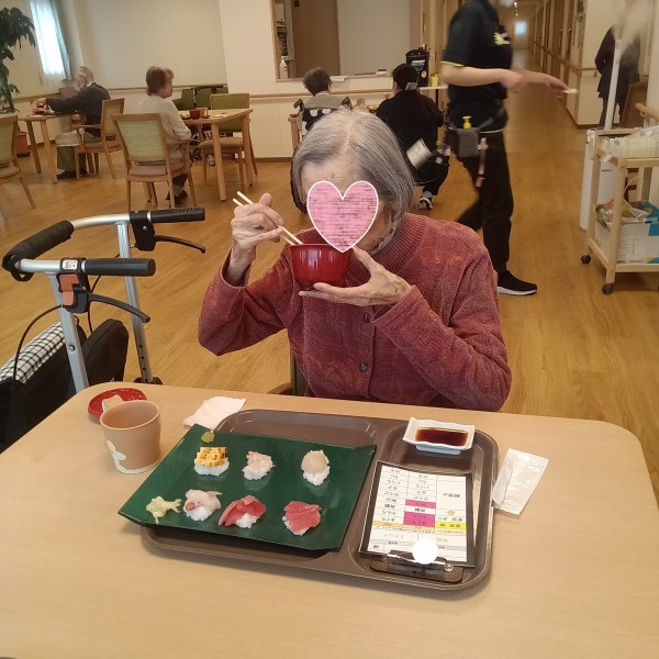 じつはお寿司レクリエーションのをやると決まり、ご利用者様にお話ししたところ第一声は