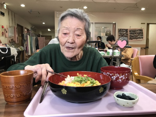 横浜三保2では、ひなまつりの行事食という事でちらし寿司とひなあられを食べました(╹ڡ╹ )