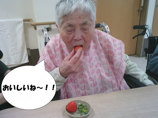 苺を見るなり、「まぁ~!真っ赤な苺ちゃん(*´ω`*)‼」とご利用者様(*^^*)