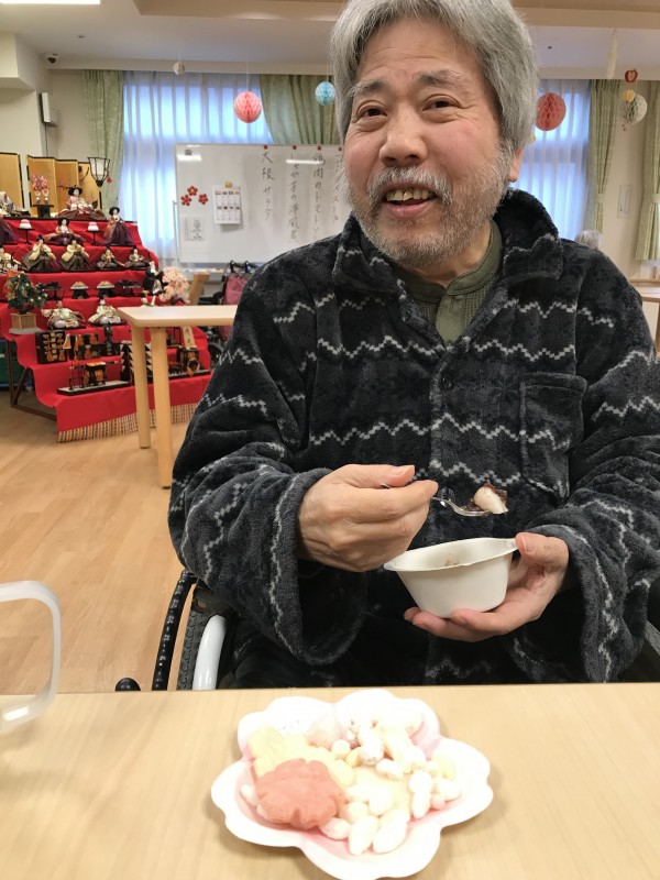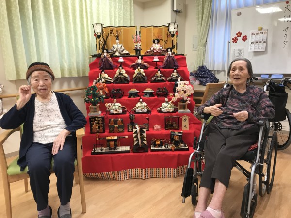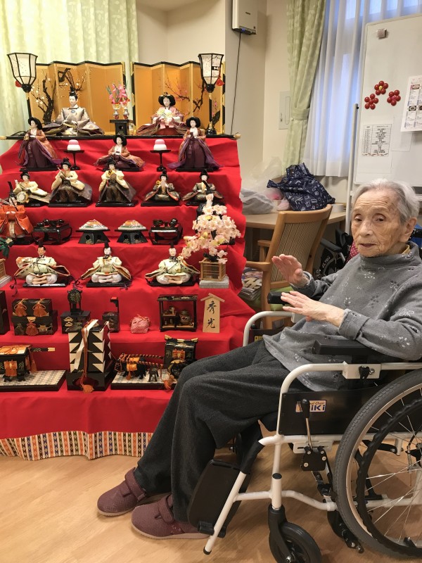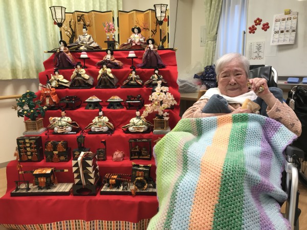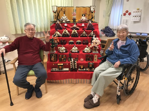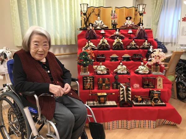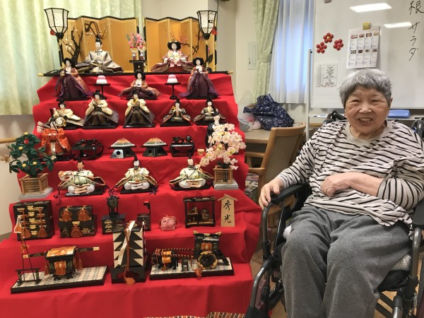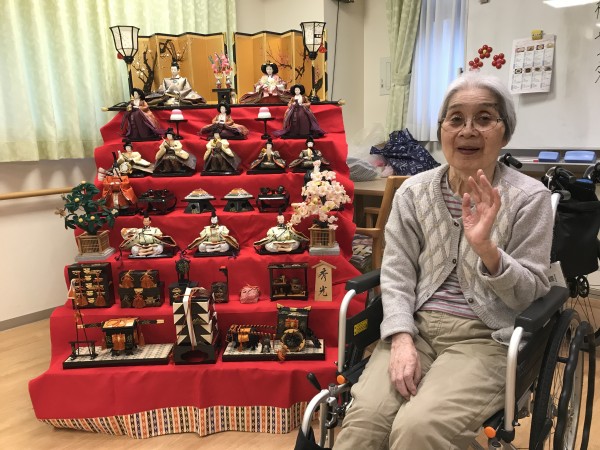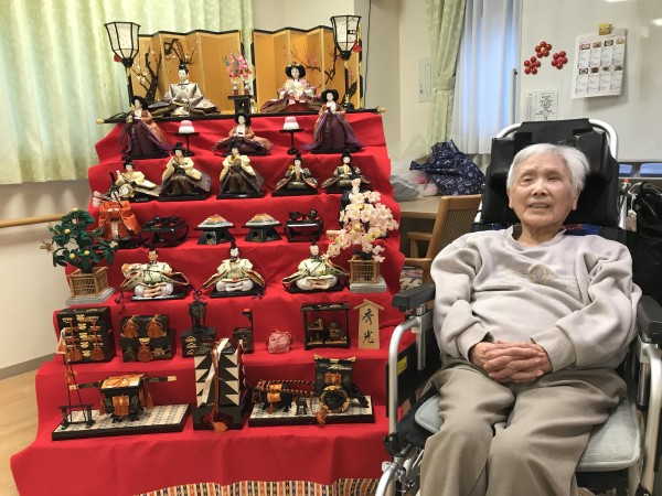1階では7段飾りの立派なひな壇を飾りひな祭りをお祝いしました(^-^)