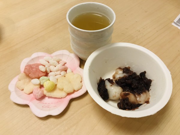 おやつにはひなあられとあんこ餅♡
