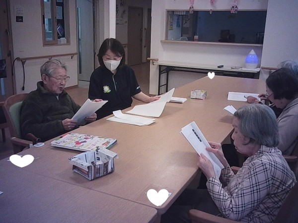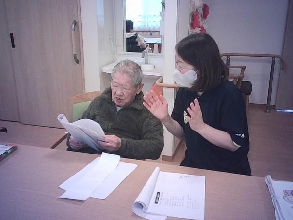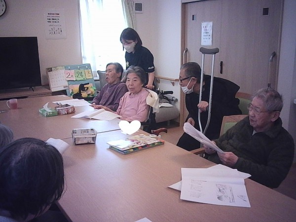 春のやわらかな陽ざしが感じられる午後、歌のレクリエーションを行いました。