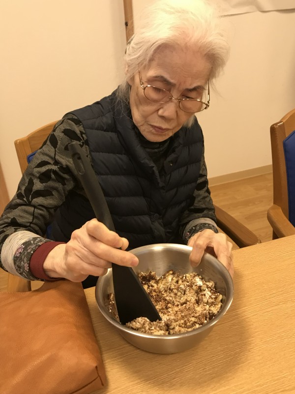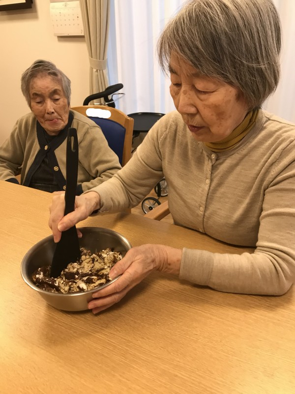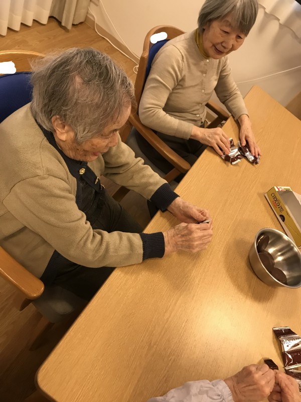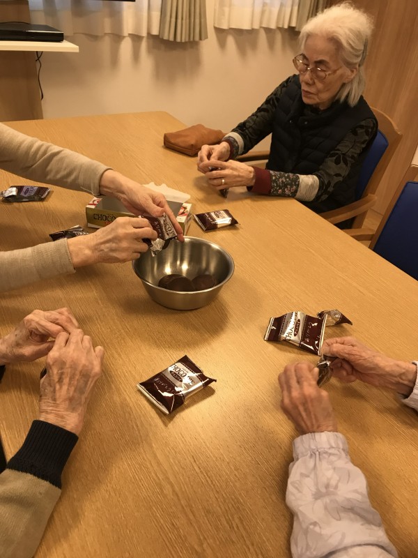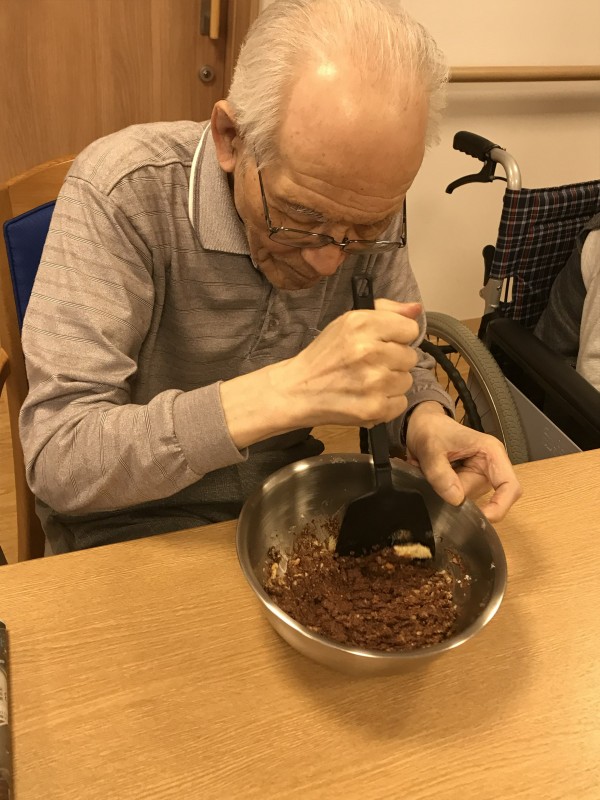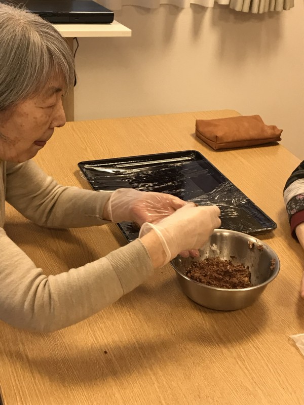 おやつレクの開催日が二月ということで、今回は皆様でトリュフ作りにチャレンジ致しました!