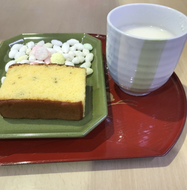 おやつ係さんが ひなあられやカステラ・甘酒を用意してくださいました
