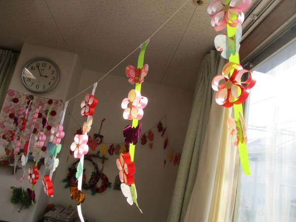 作った吊るし飾りは各フロアに飾らせていただきました☆