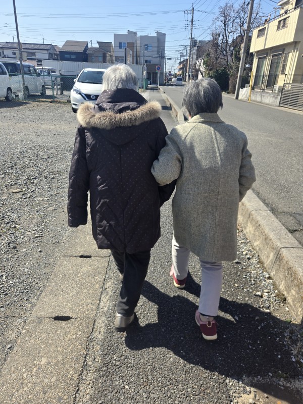 本日は、最近仲良くなったお2人と仲良くお買い物に行ってきました。北風が少し強かったのですが、お2人にどうします?と伺うと、『行く!』と笑顔。はい、職員支度してきます。