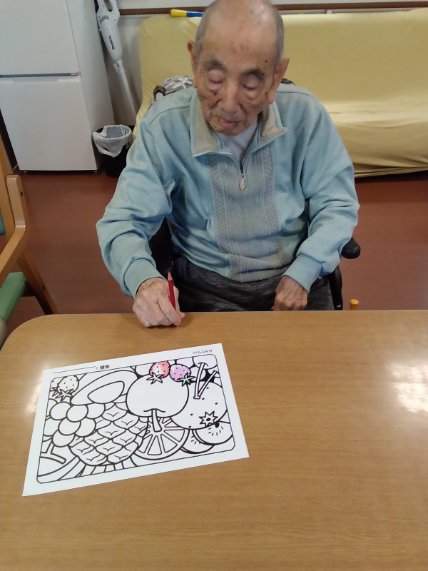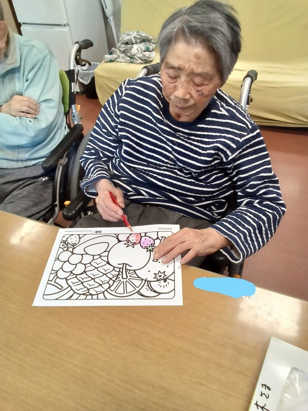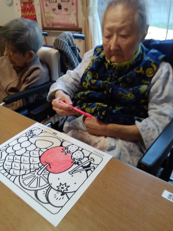 制作しているのは花の塗り絵ですが皆さまとても真剣な表情ですよね