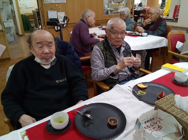 お次は職員特製、生チョコタルトと煎茶です(*^-^*)