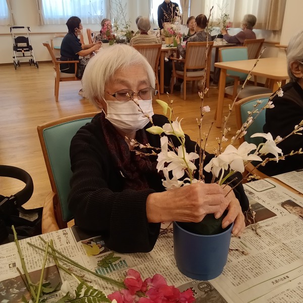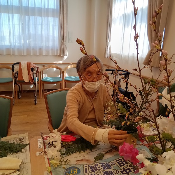 皆さん集まって 今日使うお花の説明。。