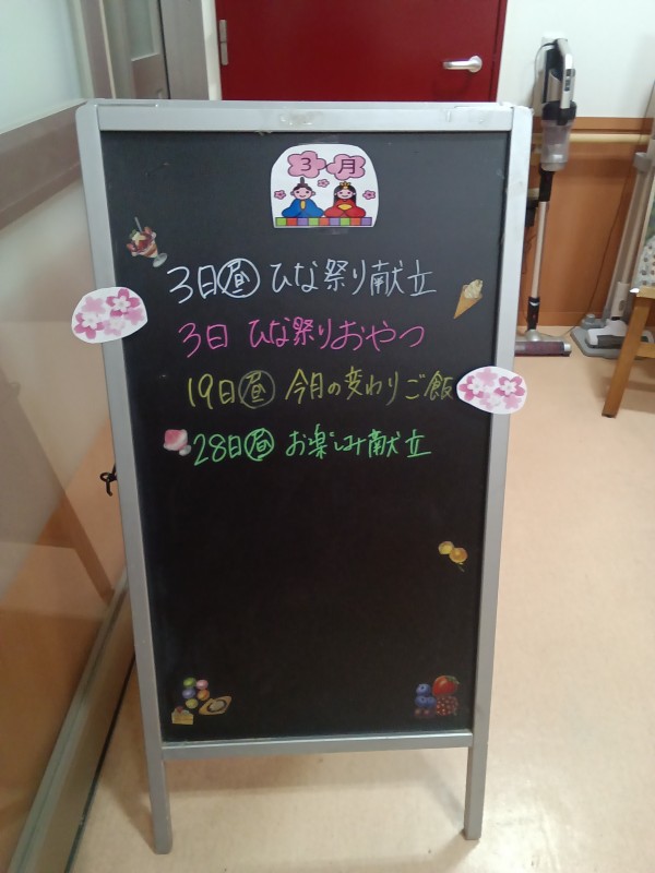 3日 ひな祭り献立(昼食) ひなまつりおやつ