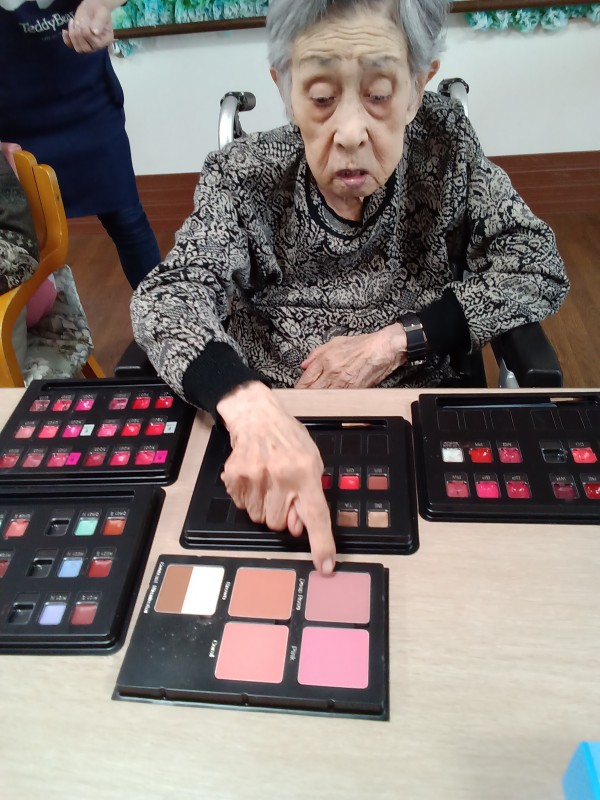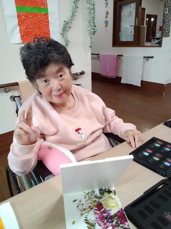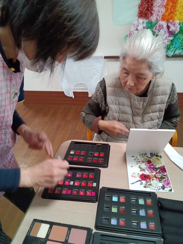 某大手化粧品会社にお勤めの経験があるスタッフにより、ご希望のご利用者様にお化粧をしていただきました。