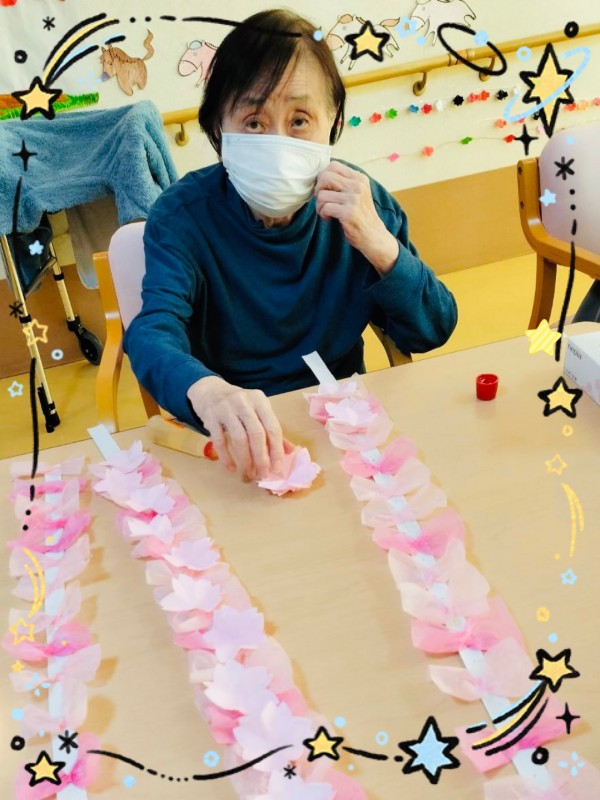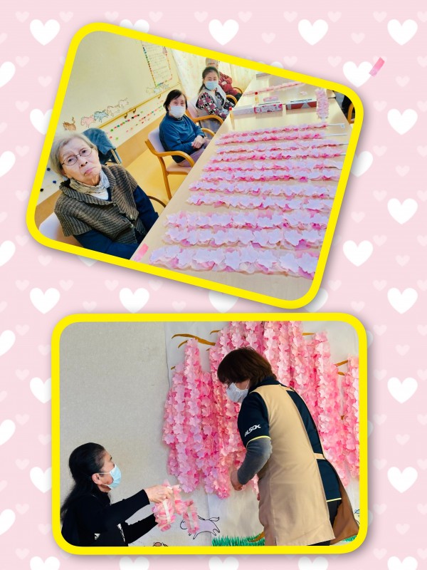 今回は壁飾り制作のご様子です。お正月飾りの次は…春の訪れを感じる壁飾りを制作しました。