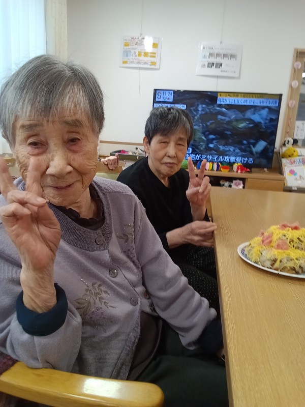 2月の終わり頃、2Uでは節分豆を使ってちらし寿司ケーキを作りました〜(^o^)v