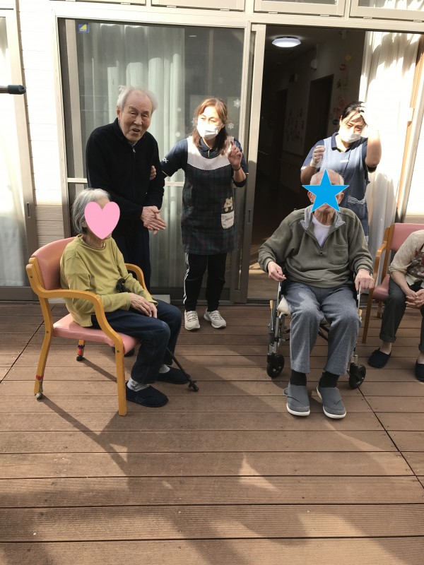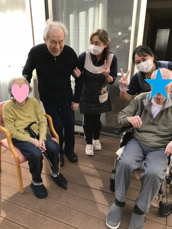 そして、お天気が良かったのこともあり、お隣の利用者様も含めみんなで日向ぼっこをしました~