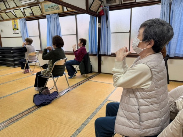 先日、毎月恒例の自治会の体操教室に、いずみ野のご利用者様と一緒に参加してきました。