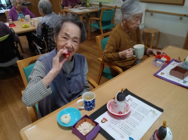こんにちは、グループホームみんなの家川崎新百合ヶ丘の介護ブログです。今回は、3月3日ひな祭りの日のご様子をお伝えいたします。昼食には五目ずし、おやつにはひなあられなどをご用意させて頂きました。皆さん喜ばれておられたご様子でした。