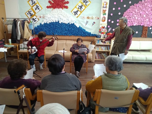 民謡レクリエーションでの三味線の生伴奏に乗せて