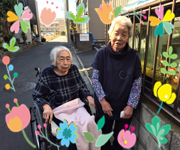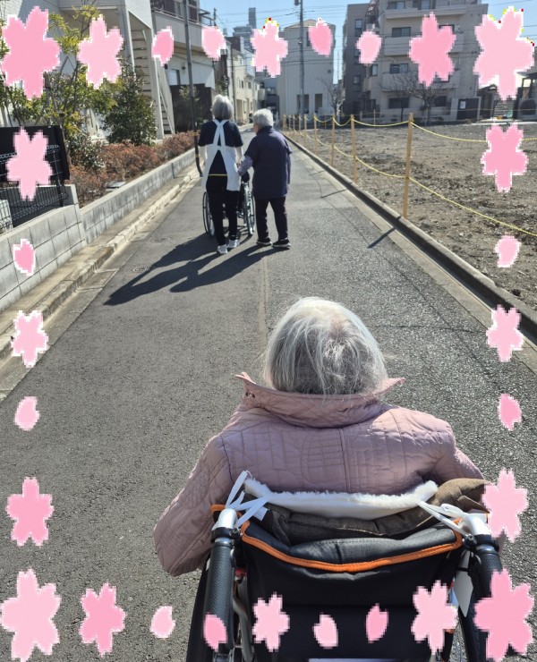 先日、ご入居者様と一緒に施設のまわりをお散歩しました♪