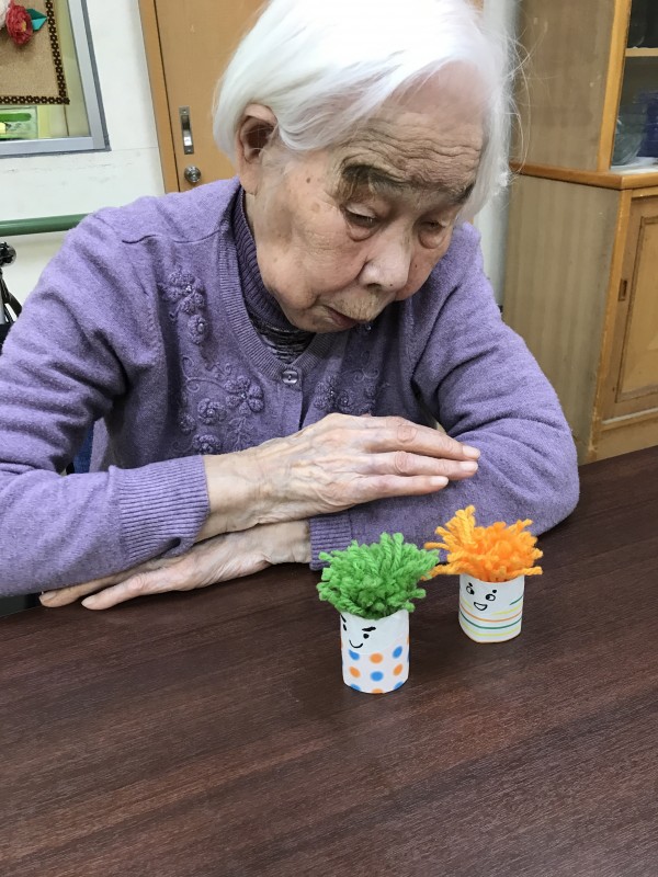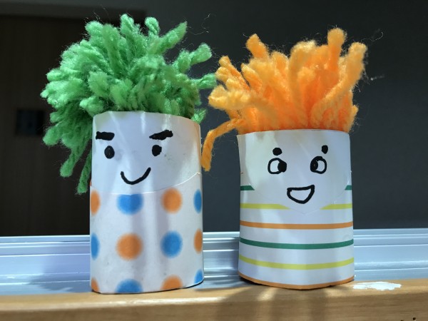 折り紙や毛糸、トイレットペーパーの芯を使ってつくりました