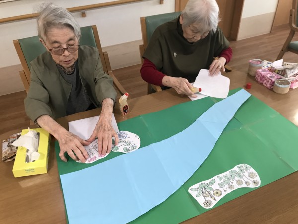 毎日、切り絵や塗り絵でコツコツと小さな作品をし、パーツを完成し、大きな飾りができる頃に