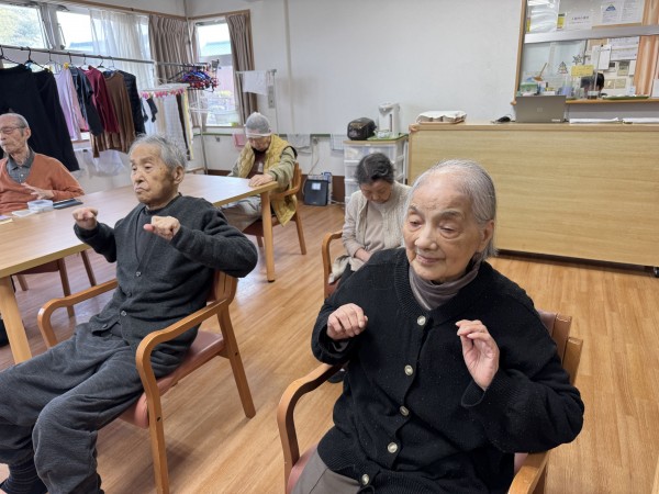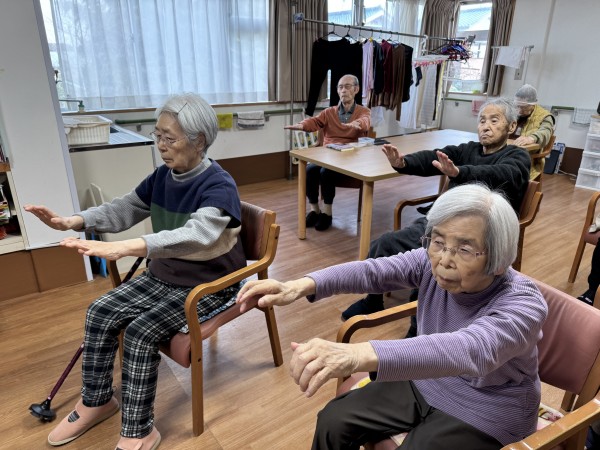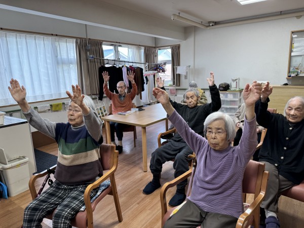 今日の体操は、リズムに合わせて行う「いきいきリズム体操」。ご機嫌な音楽のリズムに自然に身体も動きます。