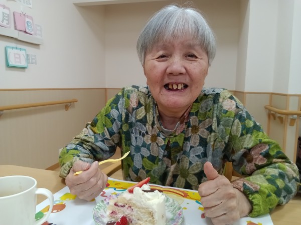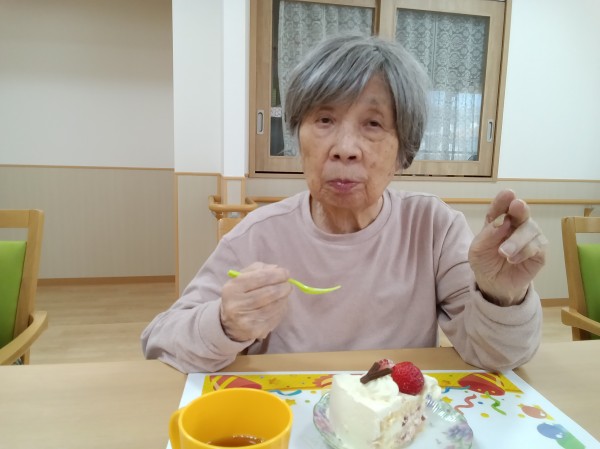 全員でお祝いした後は、ホールケーキを切ってお待ちかねのおやつタイム。