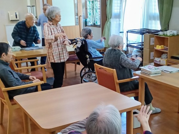 グループホームみんなの家・中野鷺宮で普段の体操の様子です。