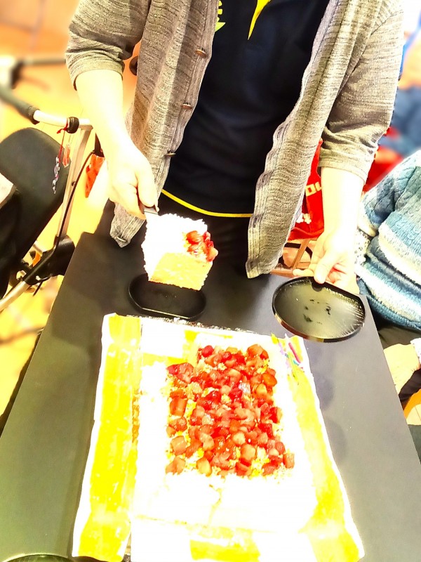 施設では、あまり食べれない特別に手作り苺イチゴケーキが提供されました。