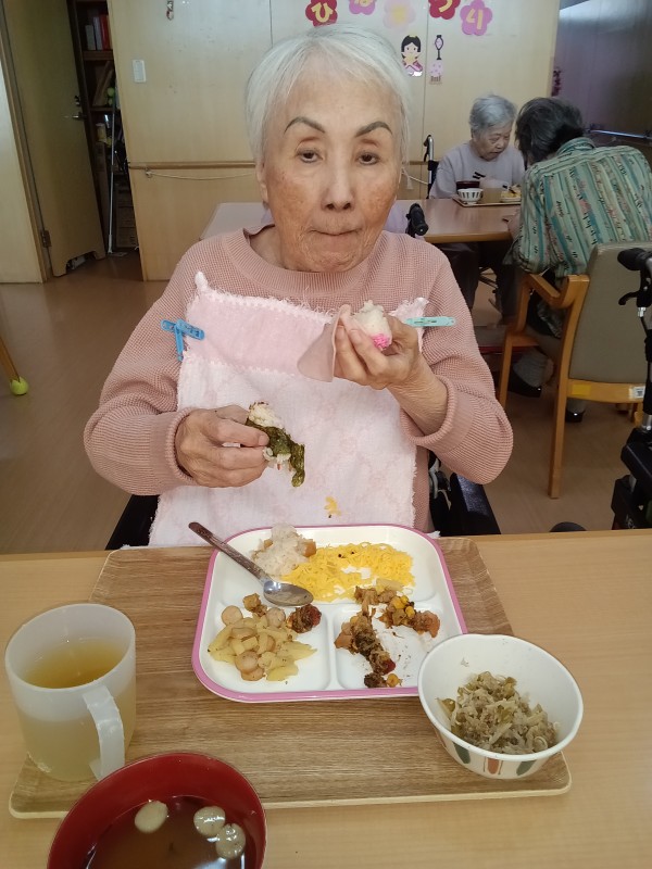 お雛様風のおにぎりを作った食レクの様子について紹介したいと思います。