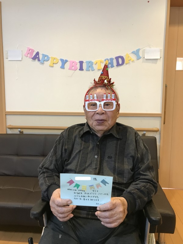 今回は1F、2F合同で1月、2月に誕生日を迎えた方達のお誕生日会をした時の様子をお届けしたいと思います。